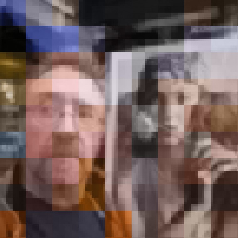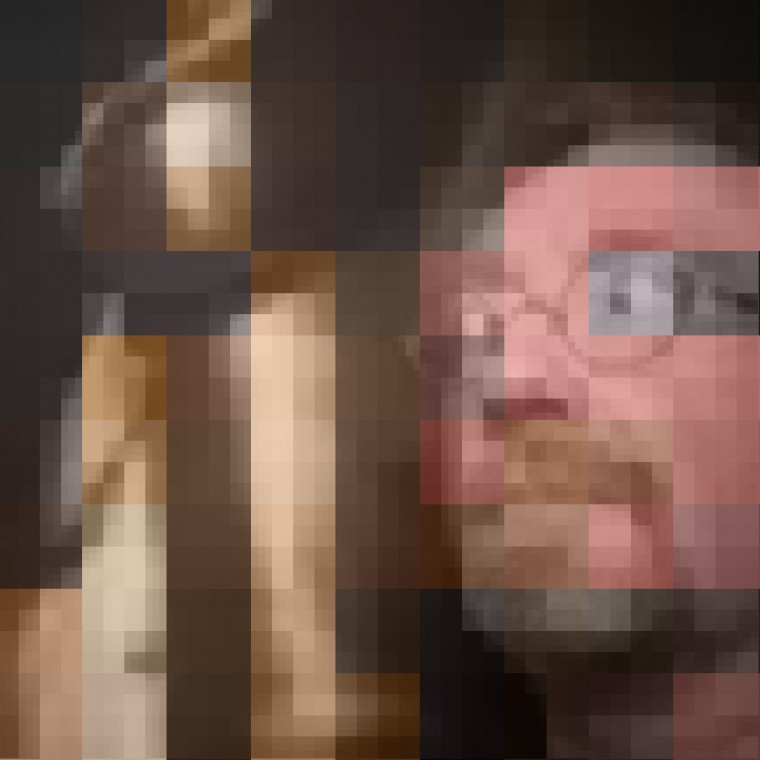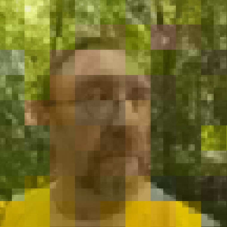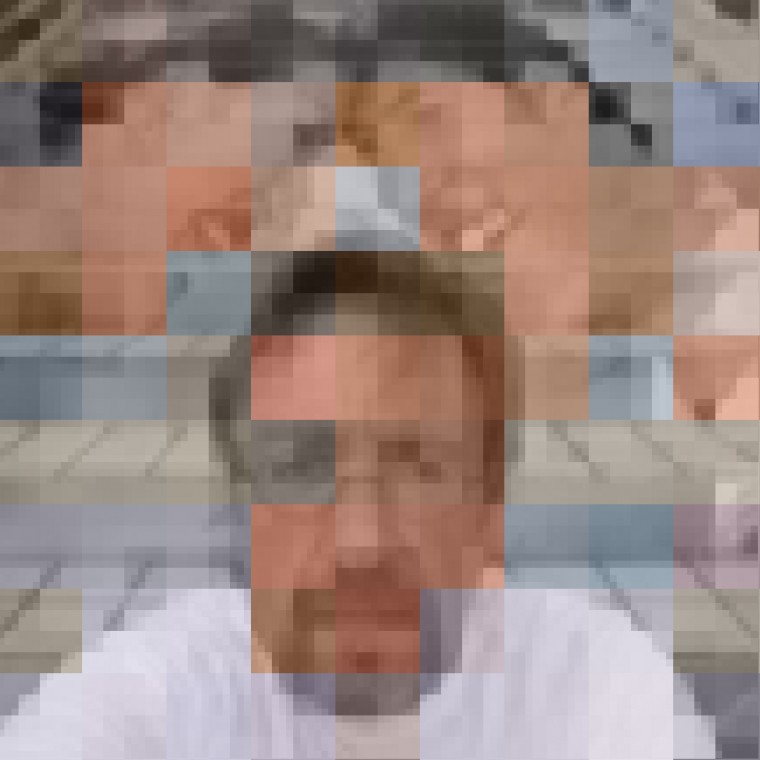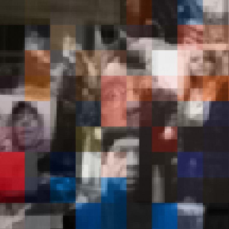 A photograph is a visual epigram, offering a single thought or statement. I have removed the constraints of a traditionally created likeness, instead offering an abstract, digitally deconstructed arrangement of my identity. My self-portraits are shaped by the action and interplay with other layers just as our actual physical appearances are shaped by choices and interactions with the world.The images, comprised of small squares layered upon larger squares, create unique composite images with the squares establishing spatial relationships with other squares based on the hues and sizes of each square. The almost abstract images offer barriers of color, challenging the viewer to delve deeper into seeing me. How many images are necessary to reveal the truth about an unbelievably complex person?