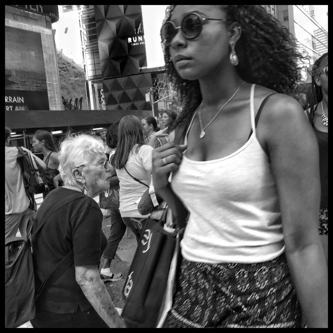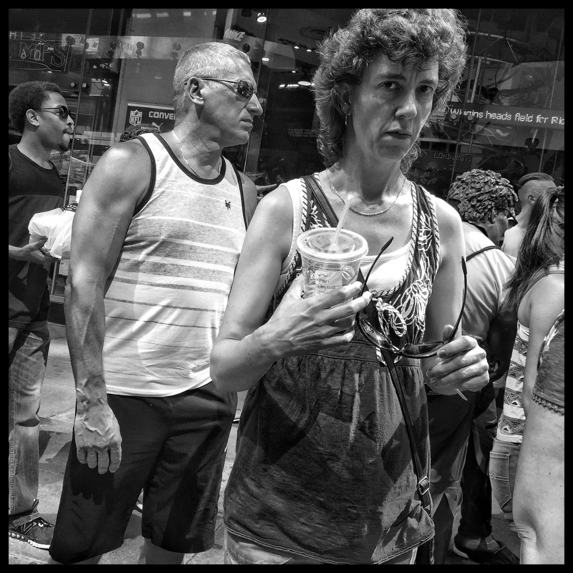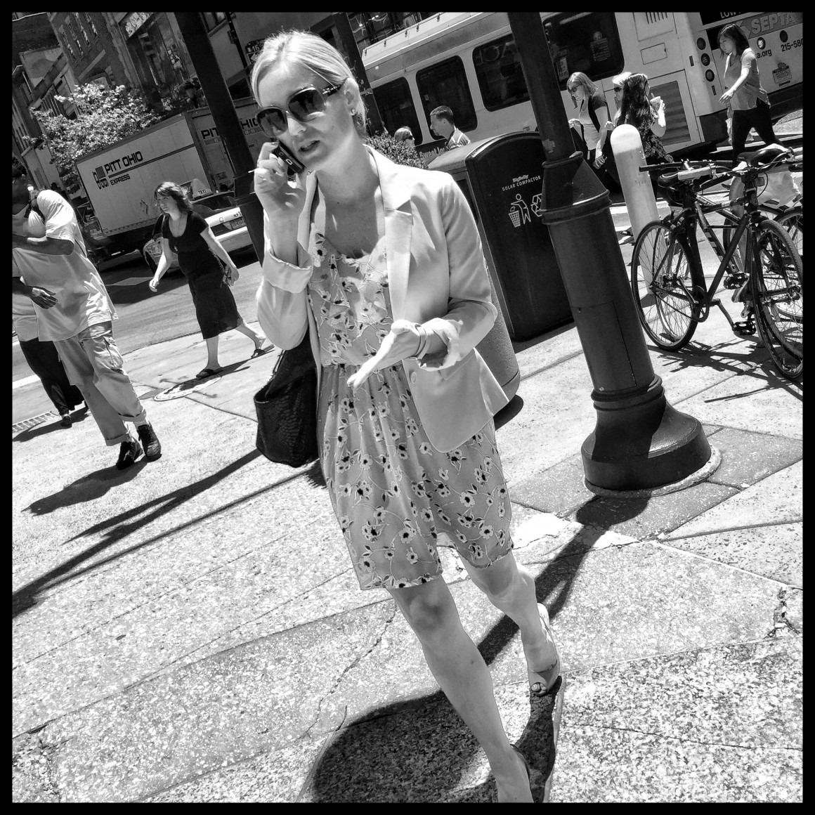 Personal projects often grow from a combination of opportunity and curiosity. In the case of street photography, other factors play a role in the creation of this small selection. I have always had deep interest in the history of all types of photography. One of my favorite photographers, Garry Winogrand, produced an incredible body of work during his lifetime. For years his work, as well as others such as Lee Friedlander, has served as an inspiration for my urban landscapes but I hesitated to enter the street photography expanse. When a tool (the iPhone) made the leap from my urban landscape images much less daunting, I stepped out onto the street and discovered another possibility to expand my photography reflections on my casual and everyday interactions with people.