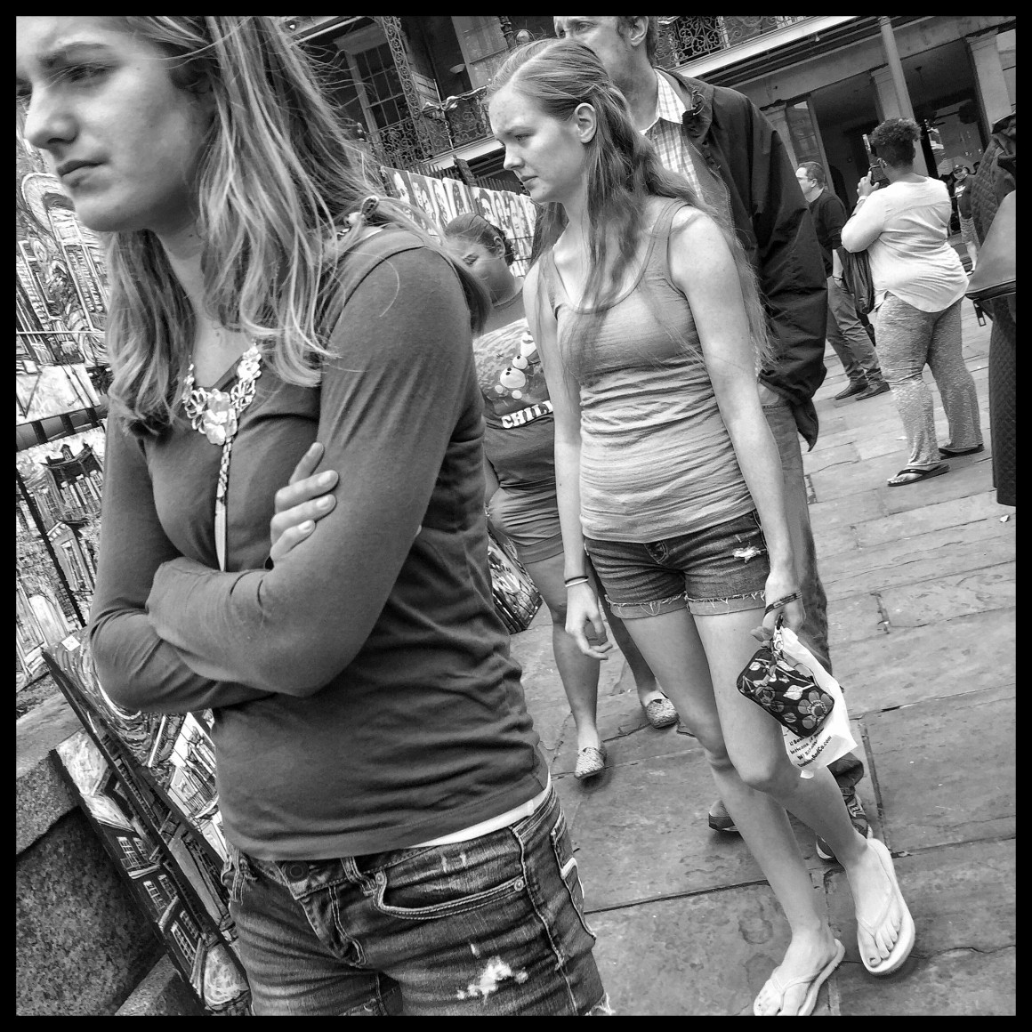 Personal projects often grow from a combination of opportunity and curiosity. In the case of street photography, other factors play a role in the creation of this small selection. I have always had deep interest in the history of all types of photography. One of my favorite photographers, Garry Winogrand, produced an incredible body of work during his lifetime. For years his work, as well as others such as Lee Friedlander, has served as an inspiration for my urban landscapes but I hesitated to enter the street photography expanse. When a tool (the iPhone) made the leap from my urban landscape images much less daunting, I stepped out onto the street and discovered another possibility to expand my photography reflections on my casual and everyday interactions with people.
